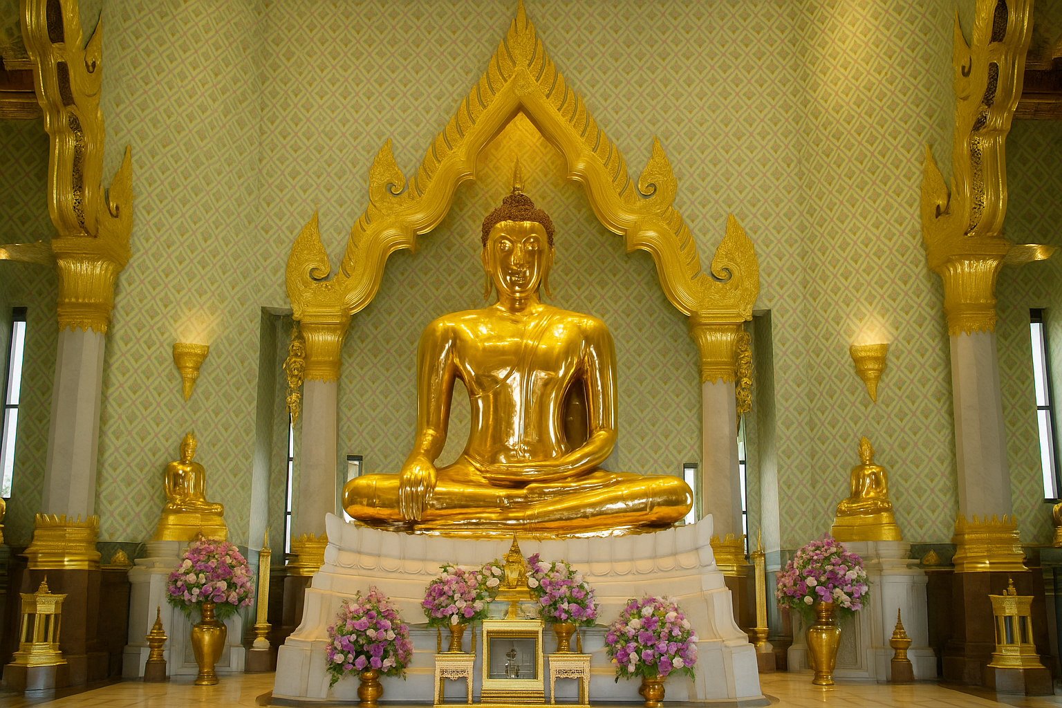 黄金に輝く巨大な仏像がご本尊のワットトライミット。