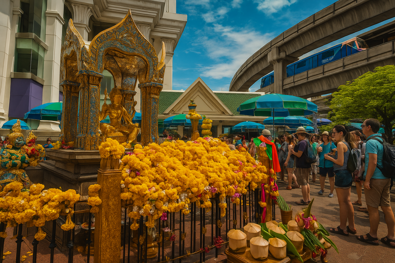 バンコク中心部、セントラルワールド前に位置するエラワン廟は、“バンコク最強のパワースポット”とも呼ばれます。