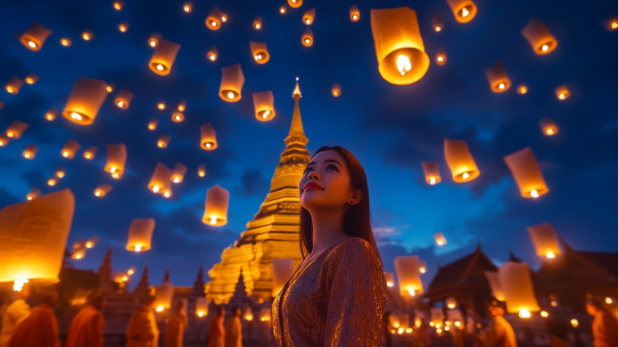 この祭りの最大の特徴は、無数のランタン(コムローイ)を夜空に放つことです。ランタンが空に浮かぶ光景は美しく、まるで星空の一部が降り注いでいるかのような感覚を味わえます。