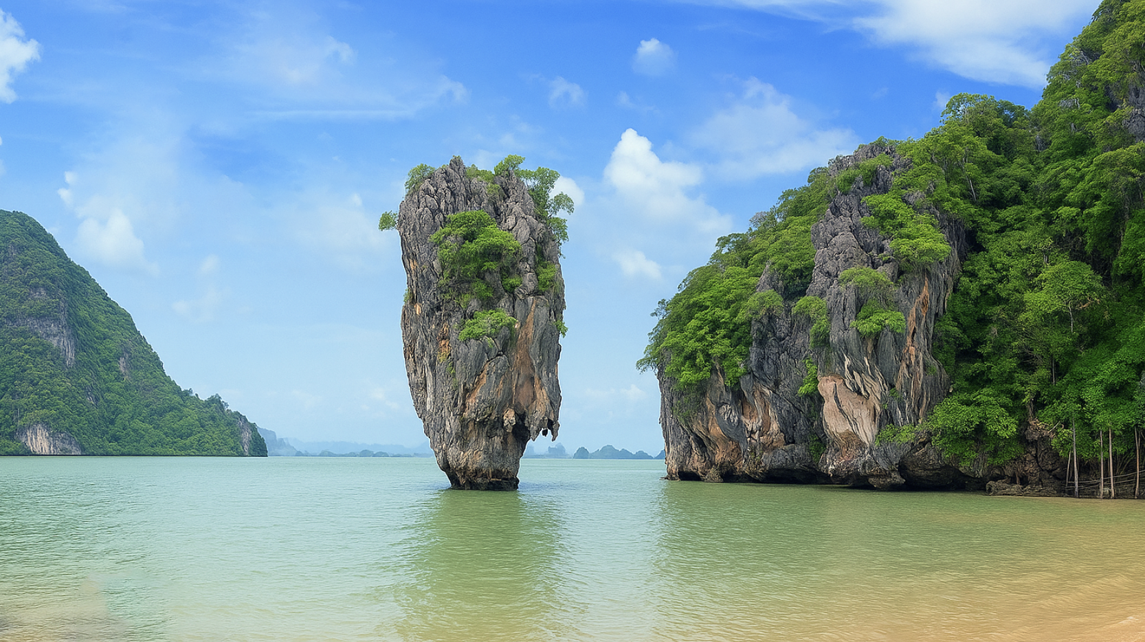 パンガー湾の海に突き出すように立つ奇岩は、まるで空から落ちてきたかのような不思議なフォルムで、訪れる人を圧倒します。
